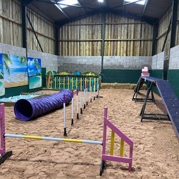 Our Play Barn adds even more variety, featuring a dedicated sniff-and-search area, ball pit, sandpit, jump, weave poles, a dog walk, and a refreshment area with items available to purchase—making Ashworth Valley the perfect destination for safe, engaging dog exercise in any season.