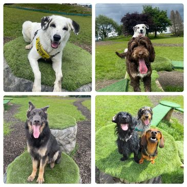 To keep every visit exciting, the field features a variety of enrichment and play equipment throughout the year. Dogs can enjoy raised platforms, tyres to run through, a slide, and a tunnel in winter, while summer brings agility favourites including an A-frame, jumps, weave poles, and a dog walk.